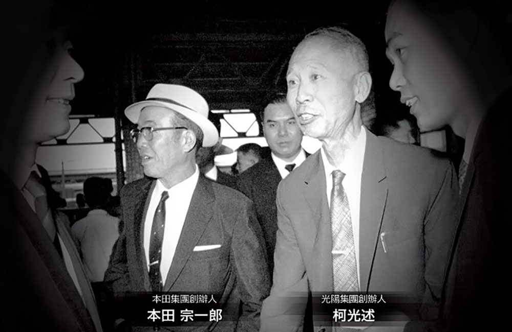 台湾を訪れたホンダグループ創業者の本田宗一郎氏と光陽工業創業者の柯光述。
