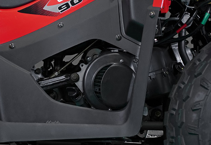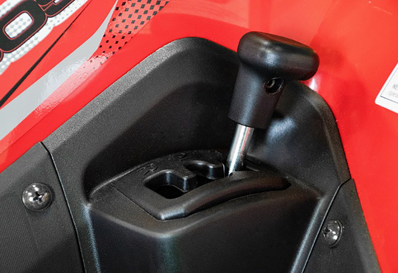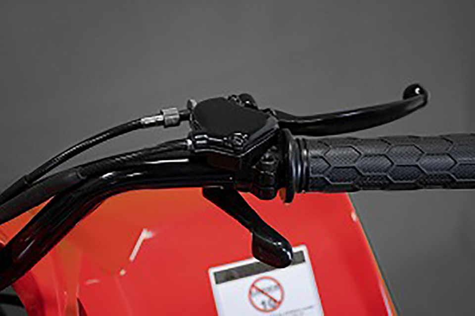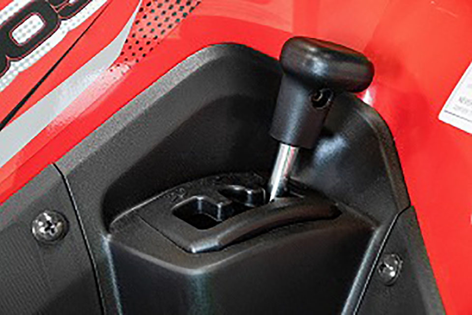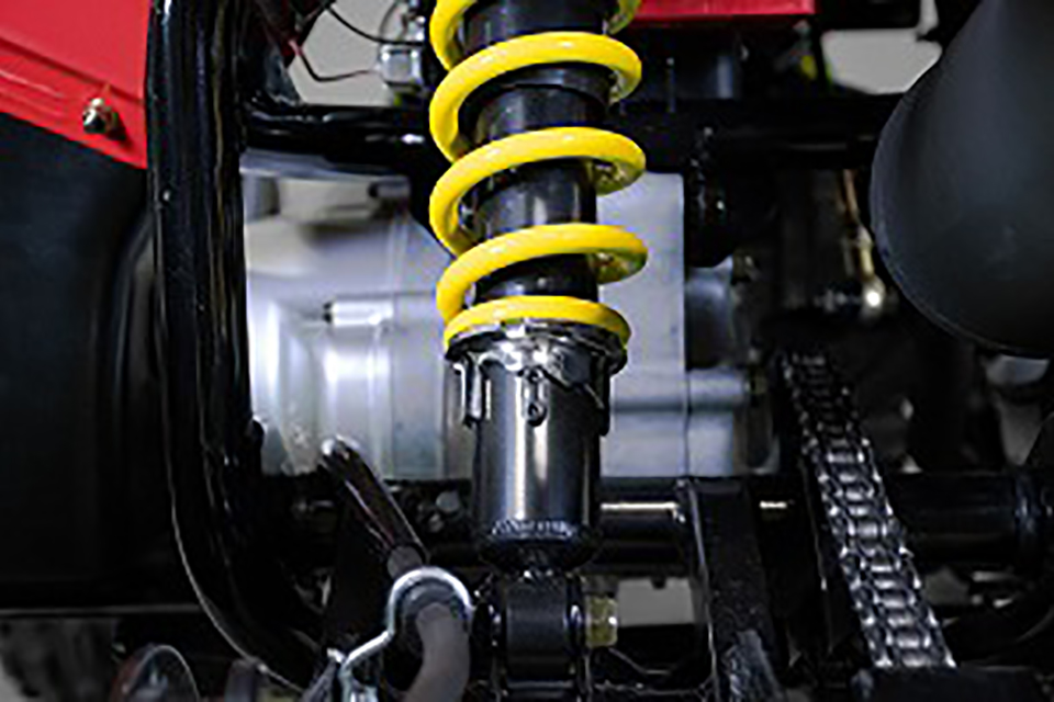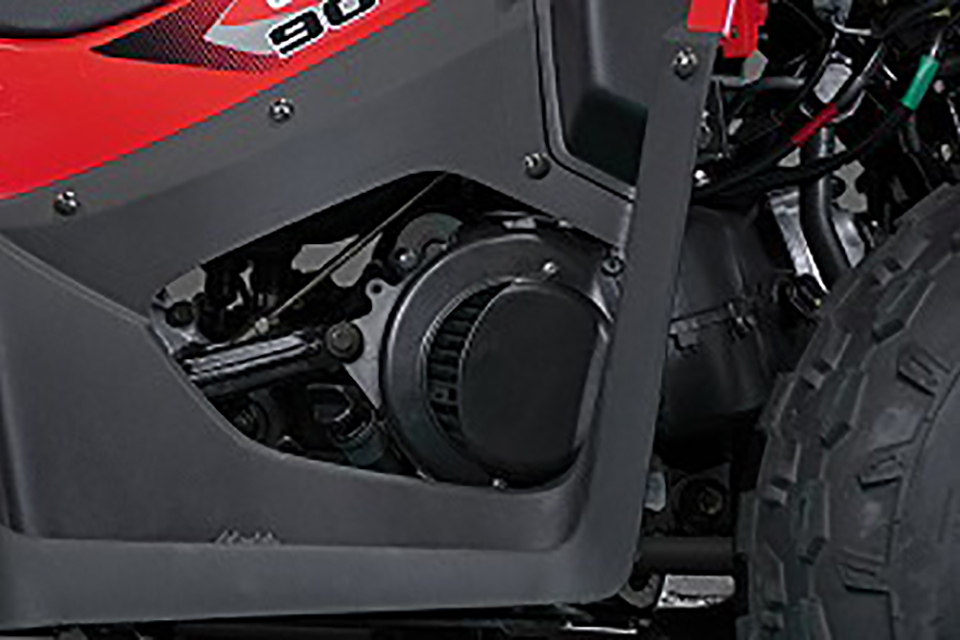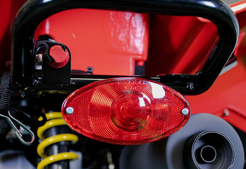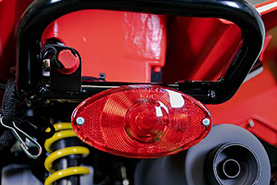 初めてATVに乗るキッズやレディースが安心て練習できる様、車体後方テールランプ脇にセーフティキルスイッチを標準装備しました。スロットル開度制限機構と合わせて使用することで安心してトレーニングをすることができます。