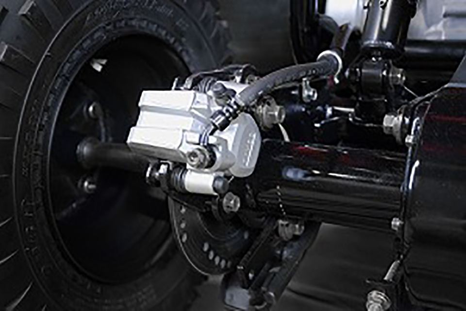 フロントに軽量なシングルAアーム方式、リアはスイングアーム方式として、ダイレクトな操作感と優れた走破性を備えています。