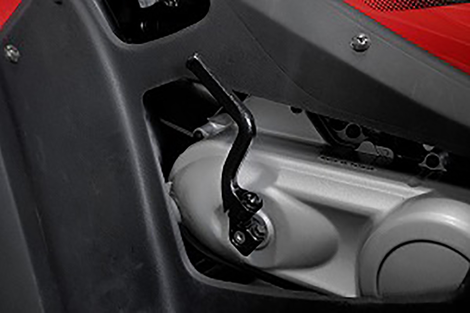 駆動システムはCVTによる無段変速と、ダイレクトな操作感のチェーン式リア駆動システムを採用、コンパクトモデルながらセレクターレバーの操作によりリバース走行も可能です。