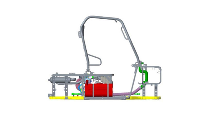 本格4WDの証明とも言えるラダーフレーム構造は、ドライバーを保護する強固なロールケージと連結することでさらに剛性を高め、悪路に耐える高い強度を確保しています。また車体構造の中で最も重いエンジンを車体中央に納めるミッドシップレイアウトにより、最適な前後重量バランスと低重心化を実現しています。