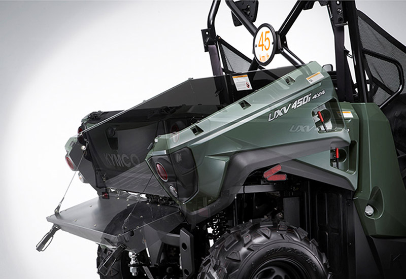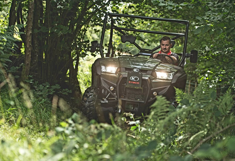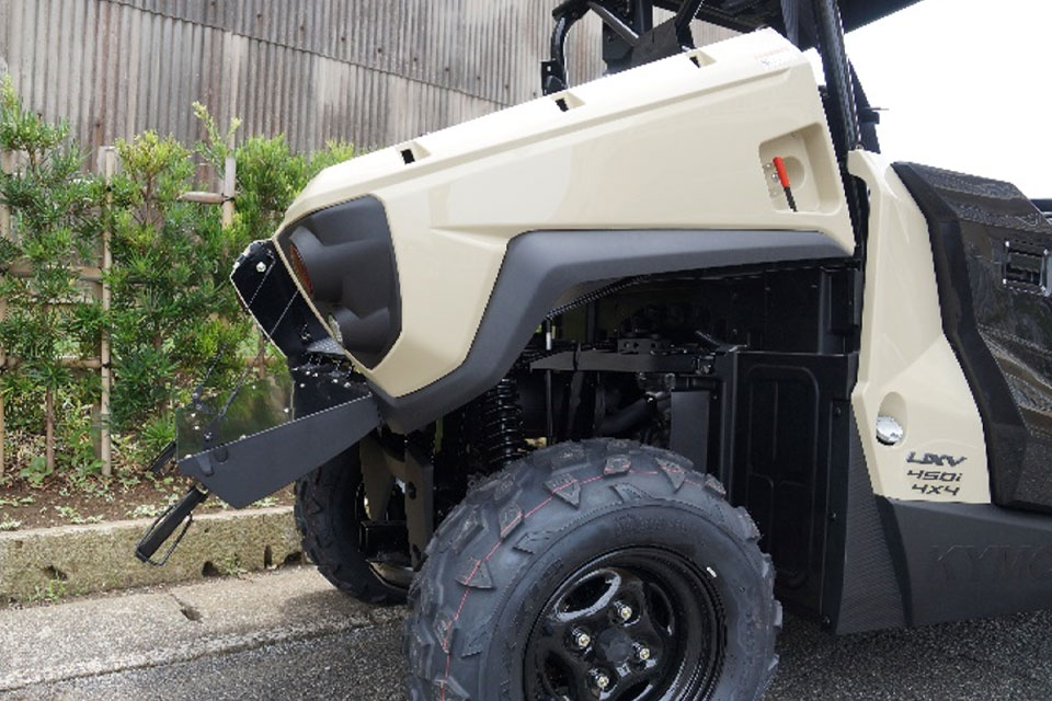 キムコ「UXV450i」は、4輪独立懸架サスペンションと軽量なボディ、パワフルな443cc水冷4バルブ単気筒エンジンなどにより圧倒的な悪路走破性能を実現したオフロード専用車両です。軽量コンパクトなボディと走破性能の高さにより、普通自動車では走破が困難な悪路や狭路での使用が可能で、1トントラックにも積載可能な優れた可搬性により、様々な用途での運用が可能な車両となっています。