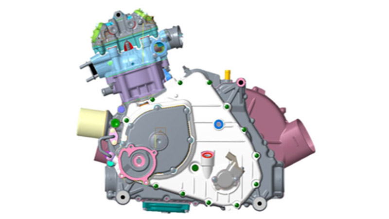 搭載される443cc水冷4ストロークSOHC4バルブ単気筒エンジンは、最高出力24.6kw(33PS)、最大トルク39Nmを発揮、フューエルインジェクションによる高度な制御により、スムースで力強い特性としました。