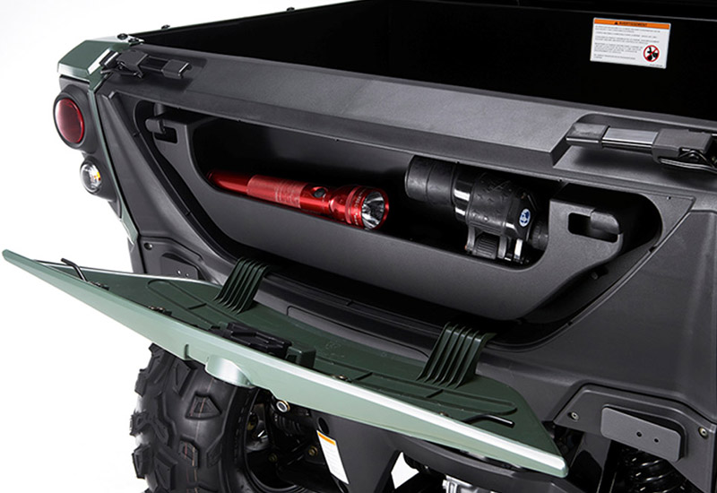 ガスダンパーによるダンプ機能を備えた荷台は、コンパクトながら最大積載量200kgという十分な積載能力により、資材や道具類の運搬に活用する事ができます。また車台後部に標準装備される2インチ角のヒッチレシーバーは最大550kgまで牽引することができるので、別途トレーラー等を使用することで大きな荷物も運搬することが可能です。