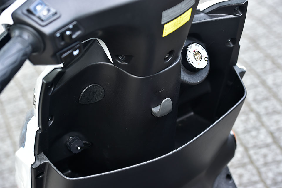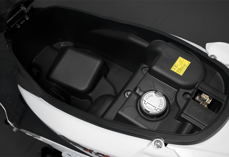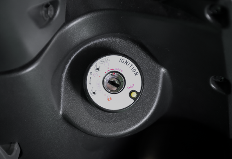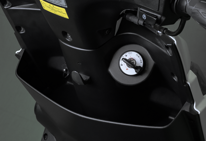 メインスイッチには盗難防止に効果的なマグネットキータイプのシャッターを標準装備、メインスイッチのオンオフのほか、ハンドルロックやシートオープンも1箇所から操作可能です。またシートはエンジンがかかっている時でもキーを押し回しすることでオープンすることができます。