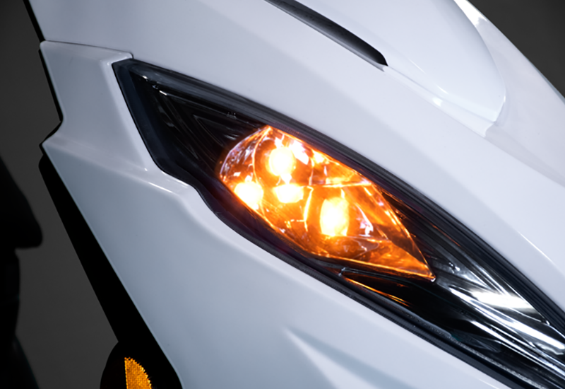 ヘッドライトはハンドルを切った方向を照らすハンドルマウント式を採用、大型のマルチリフレクターによる大光量で夜間の走行時の視認性を高めています。