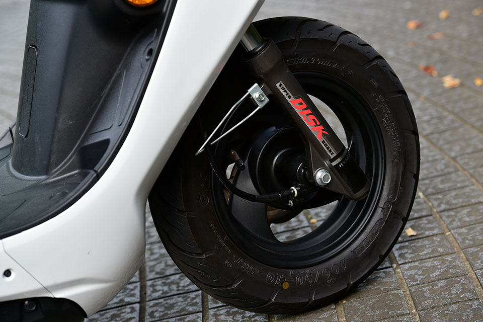 GP125VCBSに搭載されるボア52.4mm×ストローク57.8mmというロングストロークのエンジンは低い回転数から十分なトルクを発揮、10インチの小径ホイールならではの良好な発進加速性能によって交通の流れをリードすることも可能です。