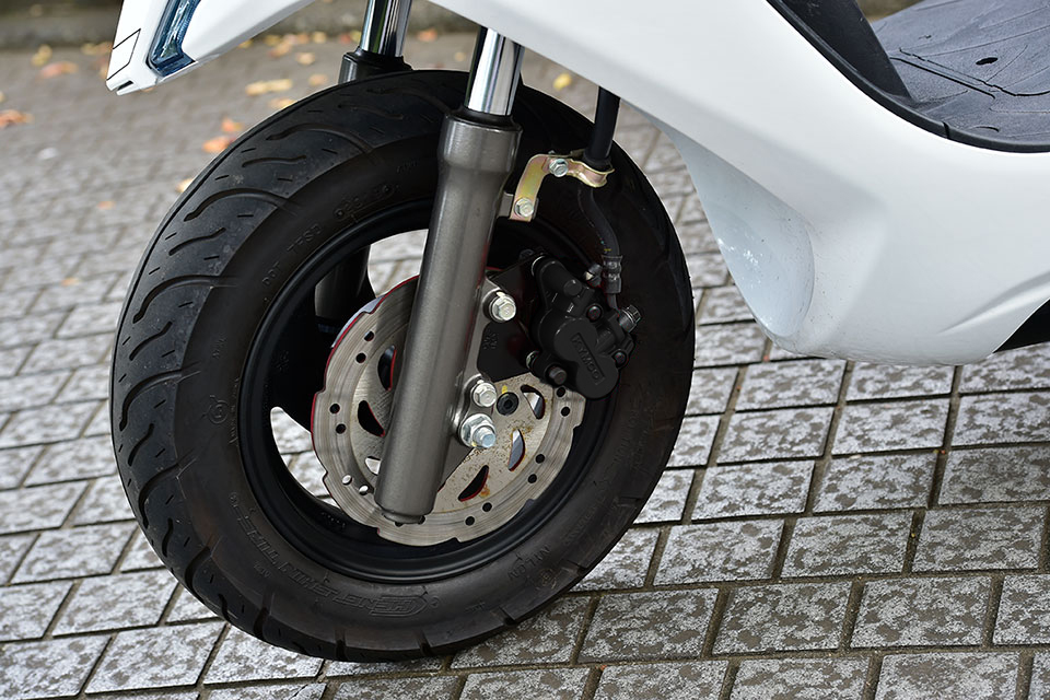 前後に10インチの小径ホイールを採用、シート高を745mmに抑えつつシート前端部を適度に絞り込むことで良好な足つき性を実現しました。