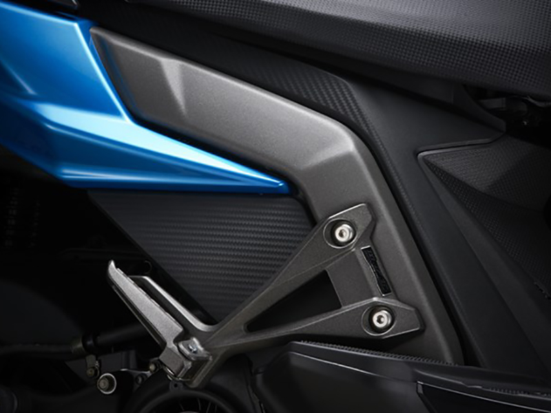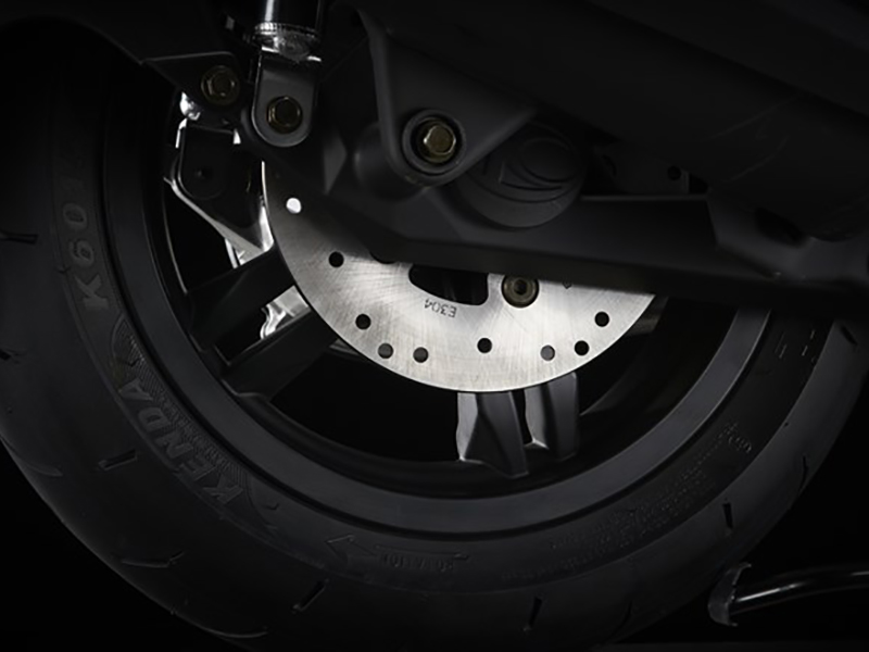 フロントの足回りには高強度ブラケットと65mmマウントピットを採用。最大40度以上のバンク角によりワインディングロードやコンパクトなターンが必要なシーンでも安心してバイクを寝かせられるので、スポーツライドを堪能することが出来ます。またフロントブレーキには300ccクラスのスクーターと同様のΦ27mmピストンを使用したキャリパーに加えてΦ240mm フローディングペタルディスクブレーキを搭載。加減速時の安定性や旋回性を高いレベルに引き上げ、自分の意のままに操れるコントロール性を実現しています。