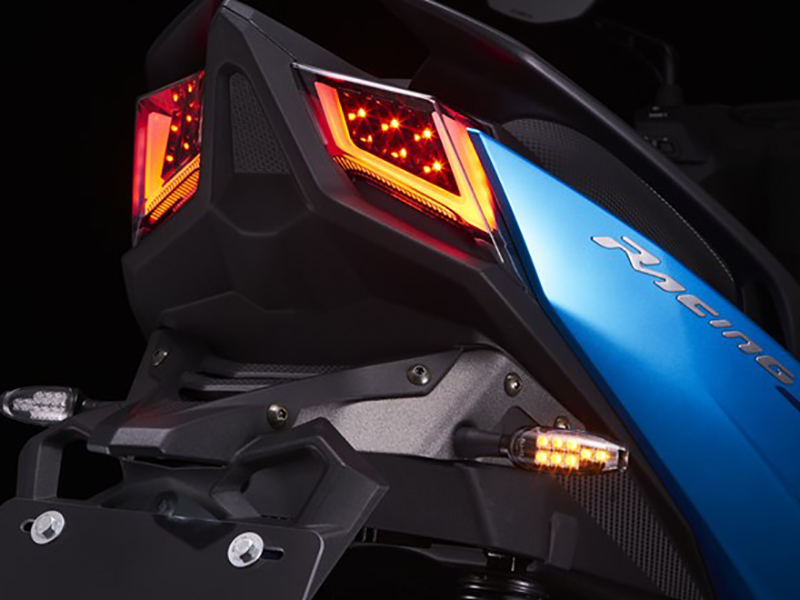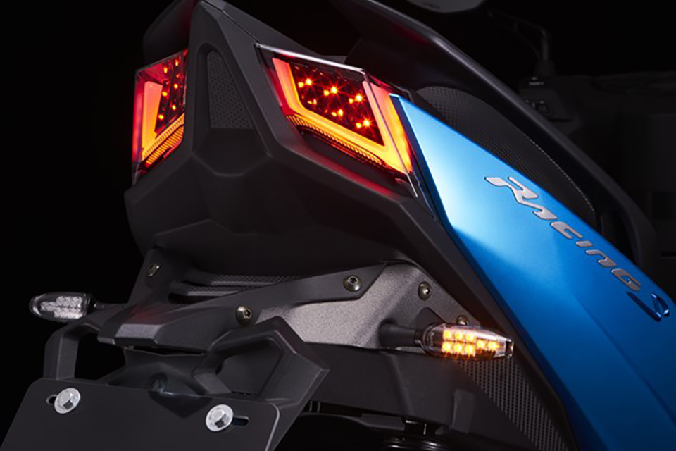 一目で「Racing S 150」とわかる特徴的なデザインのU字型LEDデュアルランプ。常時点灯のU字型LEDデュアルランプに加え、ブレーキング時にはU字枠内にある計12個の高輝度LEDが同時に点灯、後続車へ強烈にアピールし安全性を確保します。