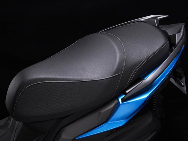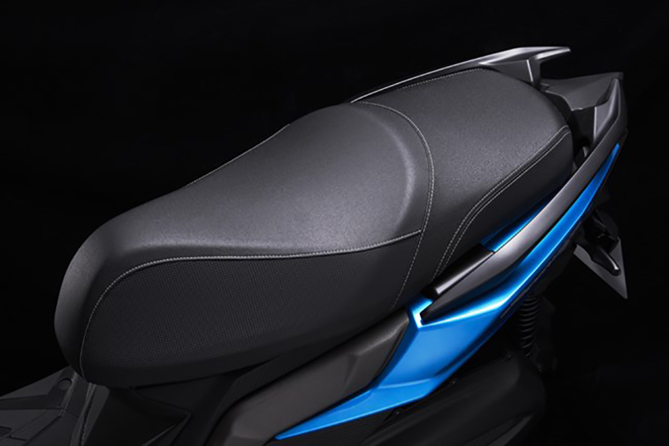 Racing S のシートは人間工学に基づき開発されました。このシートはライデイング時の負担を軽減するよう追及し、自然な乗降動作が可能な形状と、滑り止め効果のあるシート表皮、そしてクッション性の高い座面により快適性が確保されています。シート内ラゲッジスペースは平坦で使いやすい形状とし、XLサイズのフルフェイスヘルメットが収納可能です。(※ヘルメットの形状や種類により収納できない場合があります。)また、ヘビーユーザーの要望に応えるべく、メインスイッチからワンタッチでオープン可能なシートと給油口、ヘルメット+α(雨具など)を収納可能なシート下収納スペース、スマートフォンの急速充電が可能な5V2A USB充電ソケットなど、普段使いで大活躍するユーティリティを充実させました。