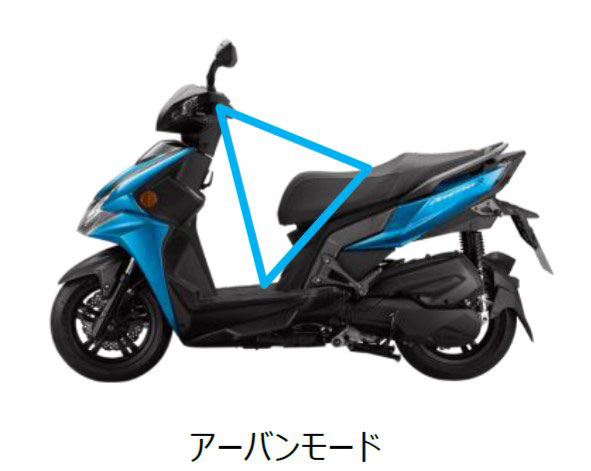 前方にフットレストを備えたフラットなフロアボードと、エルゴノミックデザインのシートは、シチュエーションによって使い分けることのできる3つのライディングポジション(アーバンモード、レーシングモード、ツーリングモード)を提供。長距離走行における疲労の低減と、スポーツ走行時のホールド性を両立しています。