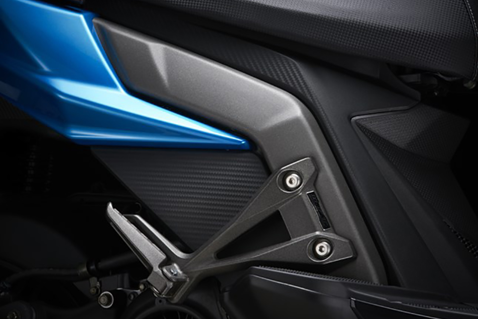 連続した曲面と複雑な構造を可能にし、高い剛性と振動吸収性を両立するハイドロフォーミングフレームを採用。剛性バランスの最適化によりRacing S 125用フレームから1.9kgの軽量化を達成、さらにタンデムステップステーや、ステムの軽量化により車両全体で3.1kgの軽量化を達成しています。